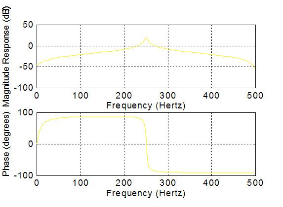 The digital filter is to have a resonance at w = p/2