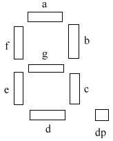 The seven segment display is wired as follows: