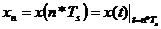If we now assume that x(t) is ideally sampled as in: